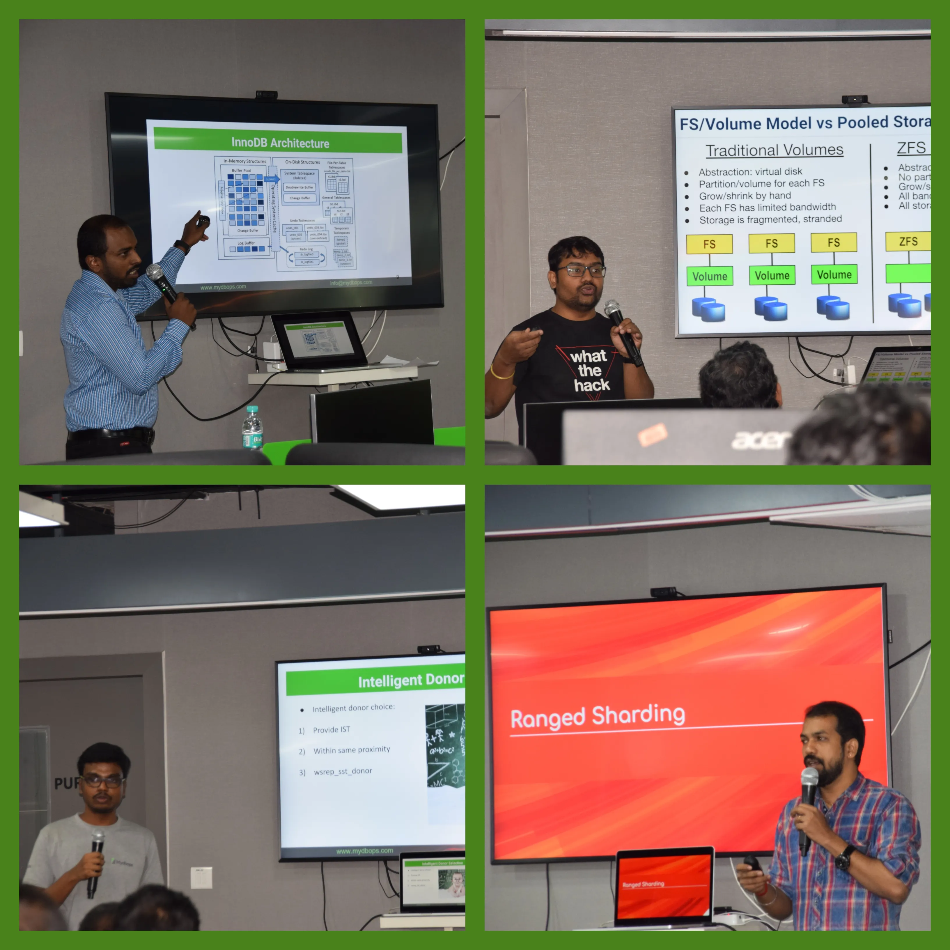 Special thanks to Mr. Vinay, Mr. Ramesh Aithal, Mr. Sagar Birla and Mr. Bajrang of Zenefits Technologies Pvt. Ltd., and Mr. Selva Venkatesh, Mr. Benedict Henry and Mr.Manthiramoorthy (Mandy) of Mydbops IT Solutions. for seamlessly and smoothly organizing the event.