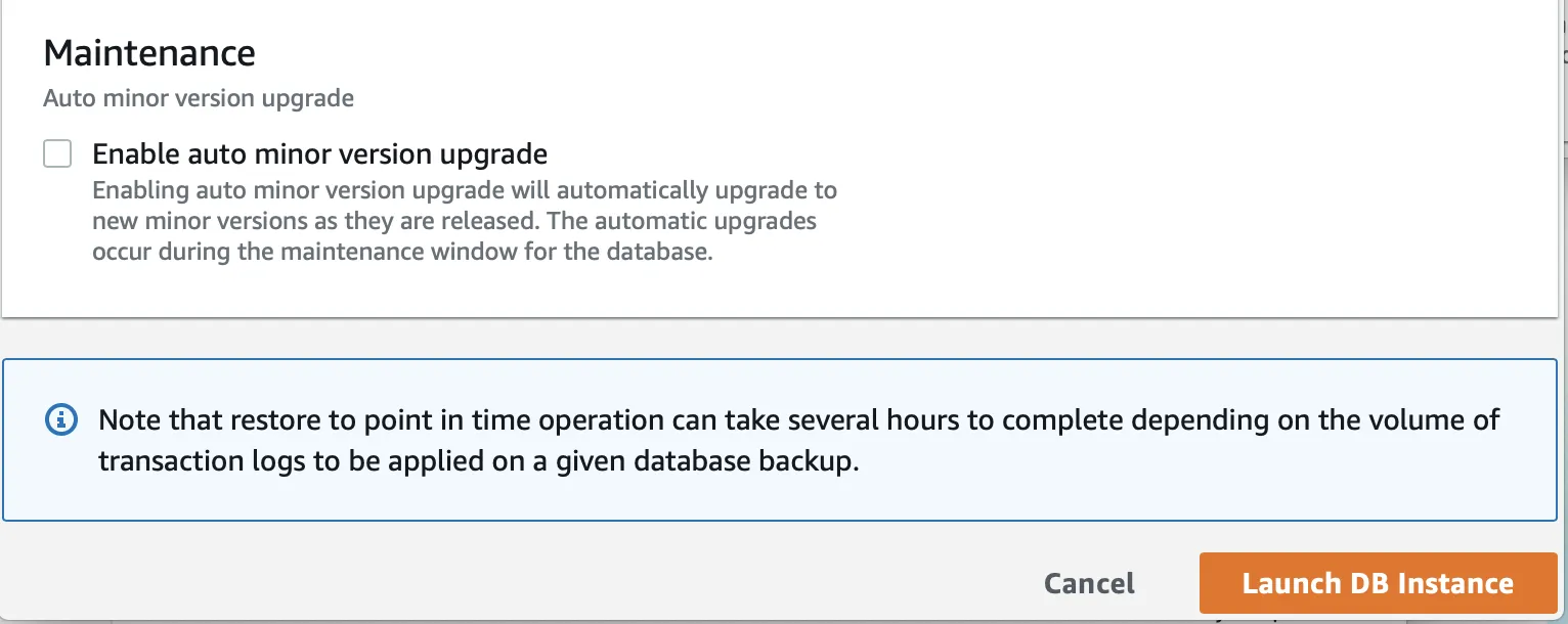 - Always make sure to have the durability settings enabled with RDS for best results with PITR again it comes with a performance penalty on IO.