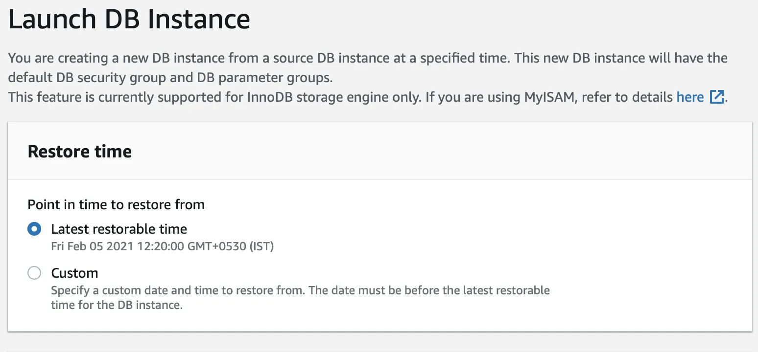Now we had to fall back on the “Point-In-Time” recovery with MySQL RDS.