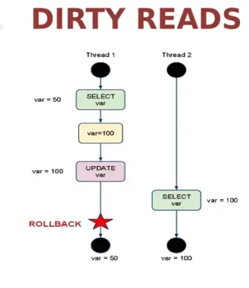 Suppose a transaction T1 modifies a row if a transaction T2 reads the row and sees the modification even though T1 has not committed it, that is a dirty read, the problem here is if T1 rolls back, T2 doesn’t know that and will be in a state of “totally perplexed”