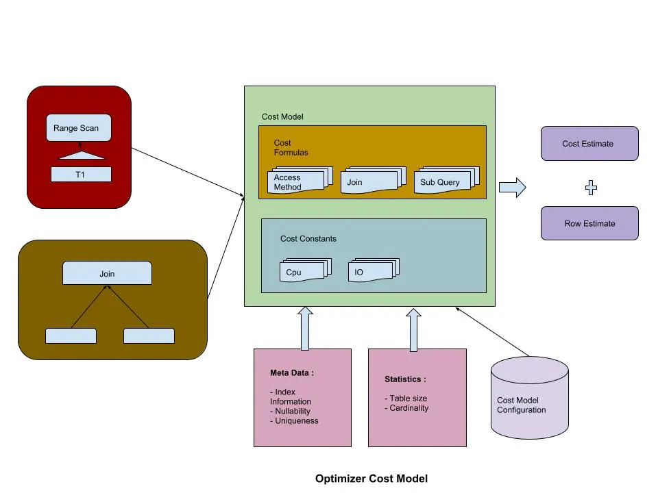 - The cost model is based on estimates of cost various operations occur during query execution.
