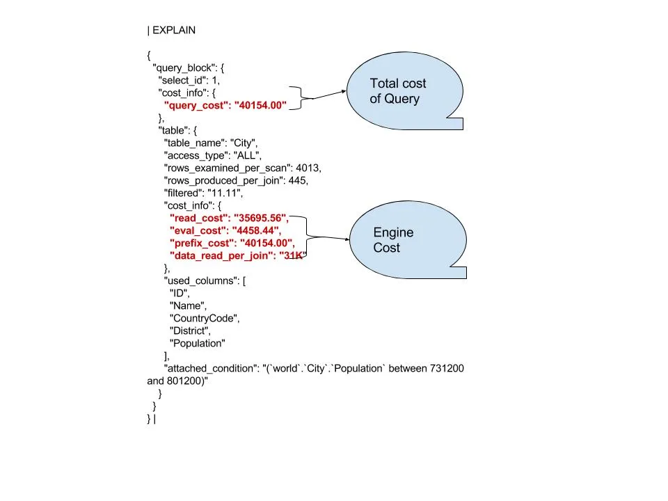 - In MySQL 5.7, the optimizer has addition a database of cost estimates to use during the execution plan.