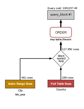 - In this join query MySQL may choose (City,Country) or (Country,City) join order. The join order does not matter when deciding a access method.