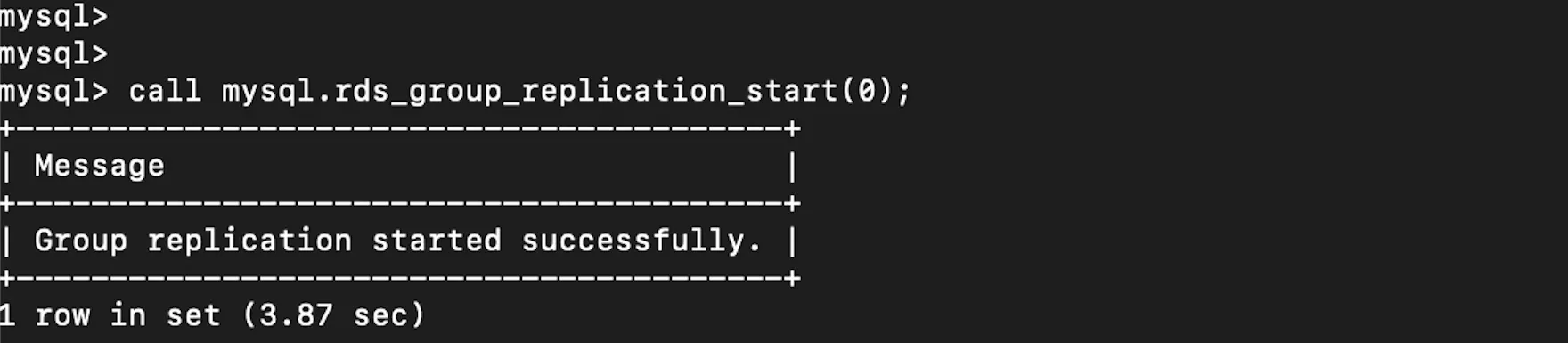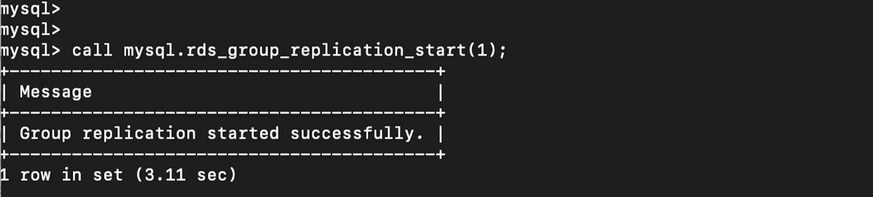 Once completed, our Group Replication (GR) cluster with RDS is up and running. You can verify the status by executing the following query on any of the nodes: