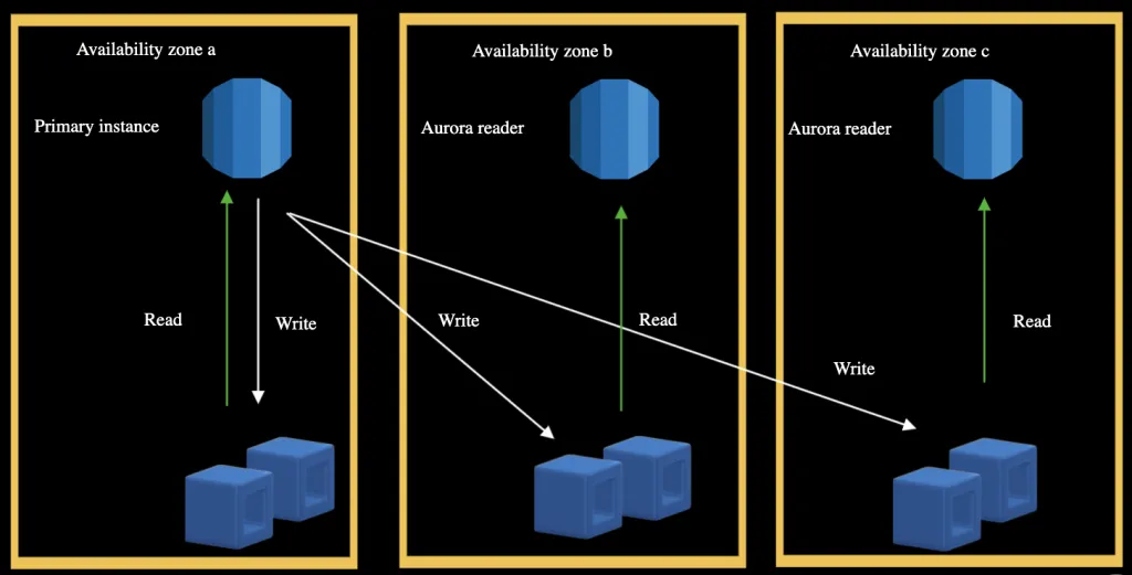 - The key feature of Aurora is simple data synchronisation among the nodes. The sync latency will be too low when compared to RDS because the synchronisation is happening on storage volumes among the nodes. Also all the server will available in different zone, even when a zone goes down we can able to maintain will other server present in other zone with auto failure.