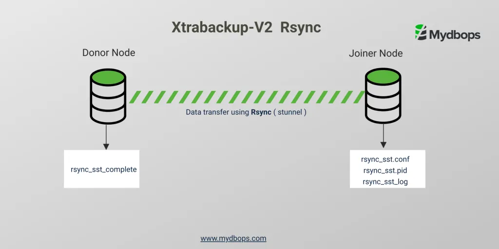 It is one of the fastest State Snapshot Transfer methods. The rsync script runs on both donor and joining nodes in the form of client – server model. Joiner here acts as the server whereas the donor here acts as the client transferring the data to the joiner (server). The major disadvantage of using this method is that the donor becomes read-only during the SST period.