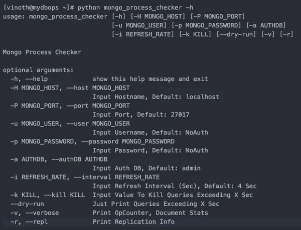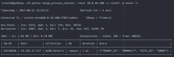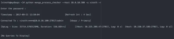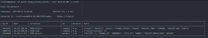By passing the host, user, password details, mongo_process_checker connects to the corresponding MongoDB server and check for the current process and displays them in a readable format.