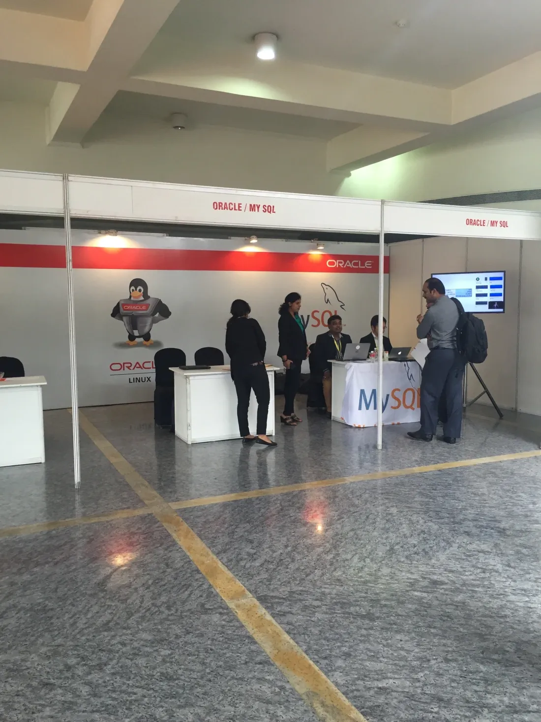 Oracle Linux and MySQL have their Stalls at the Venue ( Oracle and MySQL were Gold partners of this event ).There were five presentation from MySQL Team including the Key note.