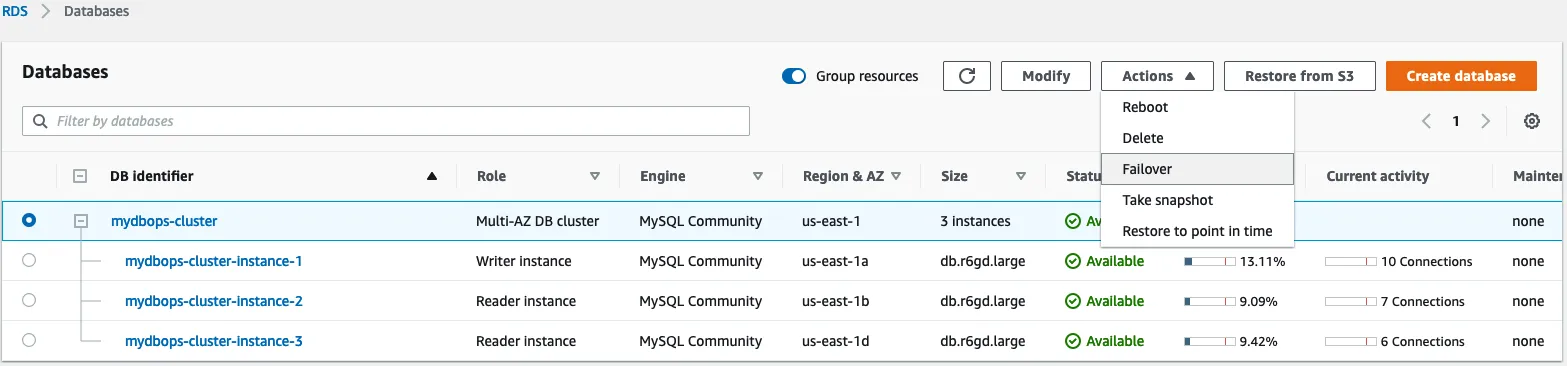 Readable MultiAZ Cluster with AWS RDS MySQL under the hood.