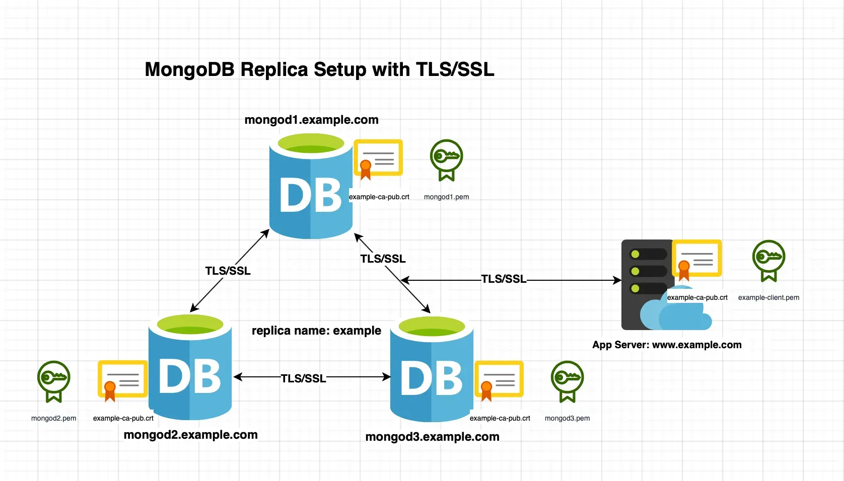 Before proceeding to create the certificates we need to understand replica set architecture is very relevant. Therefore I have presented an example replica set below, based on that we will create the certificate and do the all required Mongod configuration.