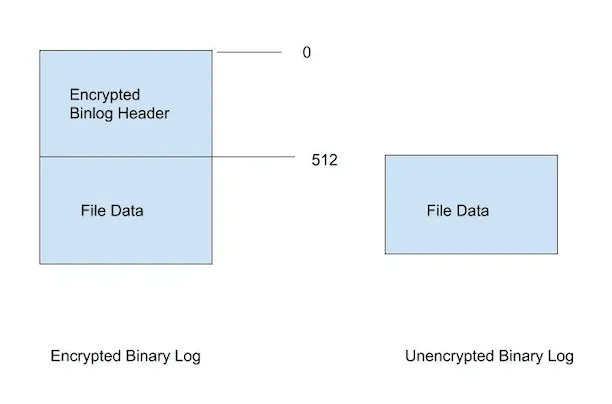 An encrypted binlog file has 0xFD62696E . An unencrypted binlog file : 0xFE62696E