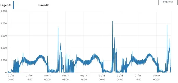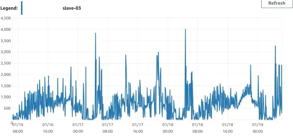It’s understood that Write IOPS / pattern on Master can vary when compared with Slave, due to a lot of factors like binlog row format, log writing etc. But it has to be almost similar for all the slaves given that it has the same configuration. But when we look into the RDS Write IOPS graphs for all the nodes usage of slave-01 is almost 50% lesser than other slave-03 & slave-05.