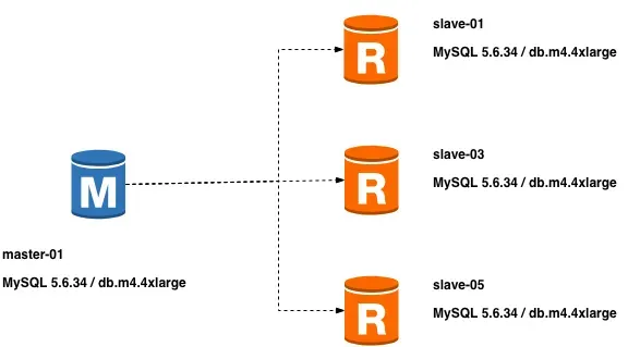 We had our production systems running on RDS MySQL with a single master, 3 replicas. All instances are of same type db.m4.4xlarge with same parameter group configuration and the disk size is 1.5 TB. According to the AWS user guide, each of these instances can support up to 4500 (sustained IOPS) guaranteed IOPS.