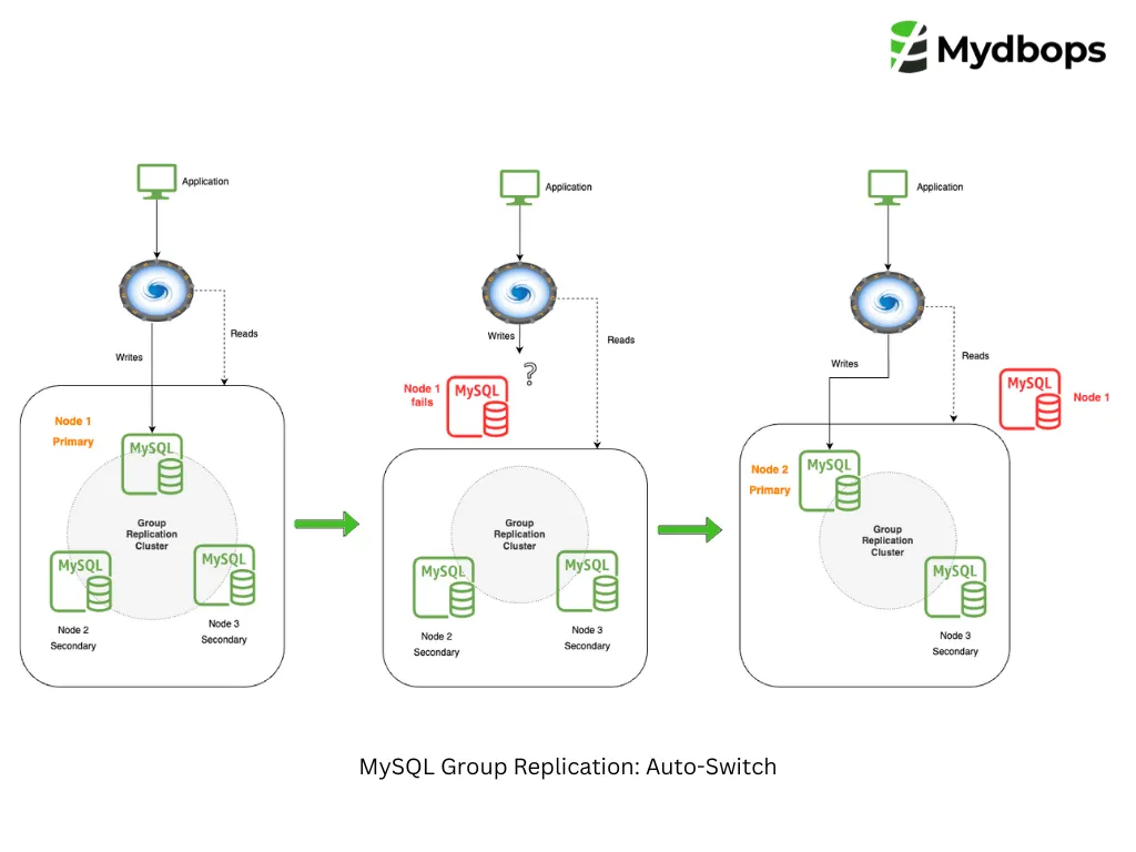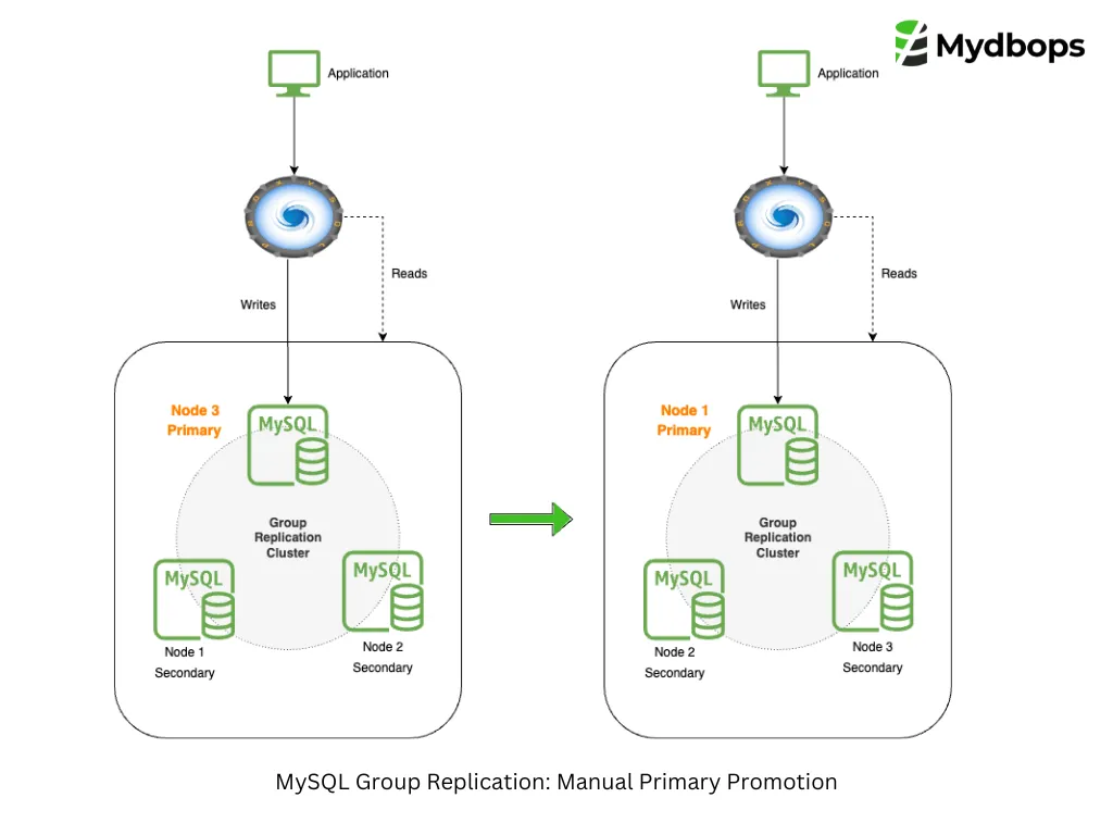 One of the key components of a group replication arrangement is the primary node, which serves as the primary source for data updates and manages the replication process. In the event that the primary node becomes unavailable, it’s crucial to switch to a new primary node to maintain the continuity of data replication and minimize downtime.