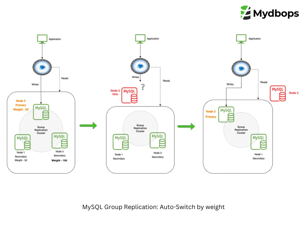 mydbops@localhost:(none)>setglobalgroup_replication_member_weight=100;